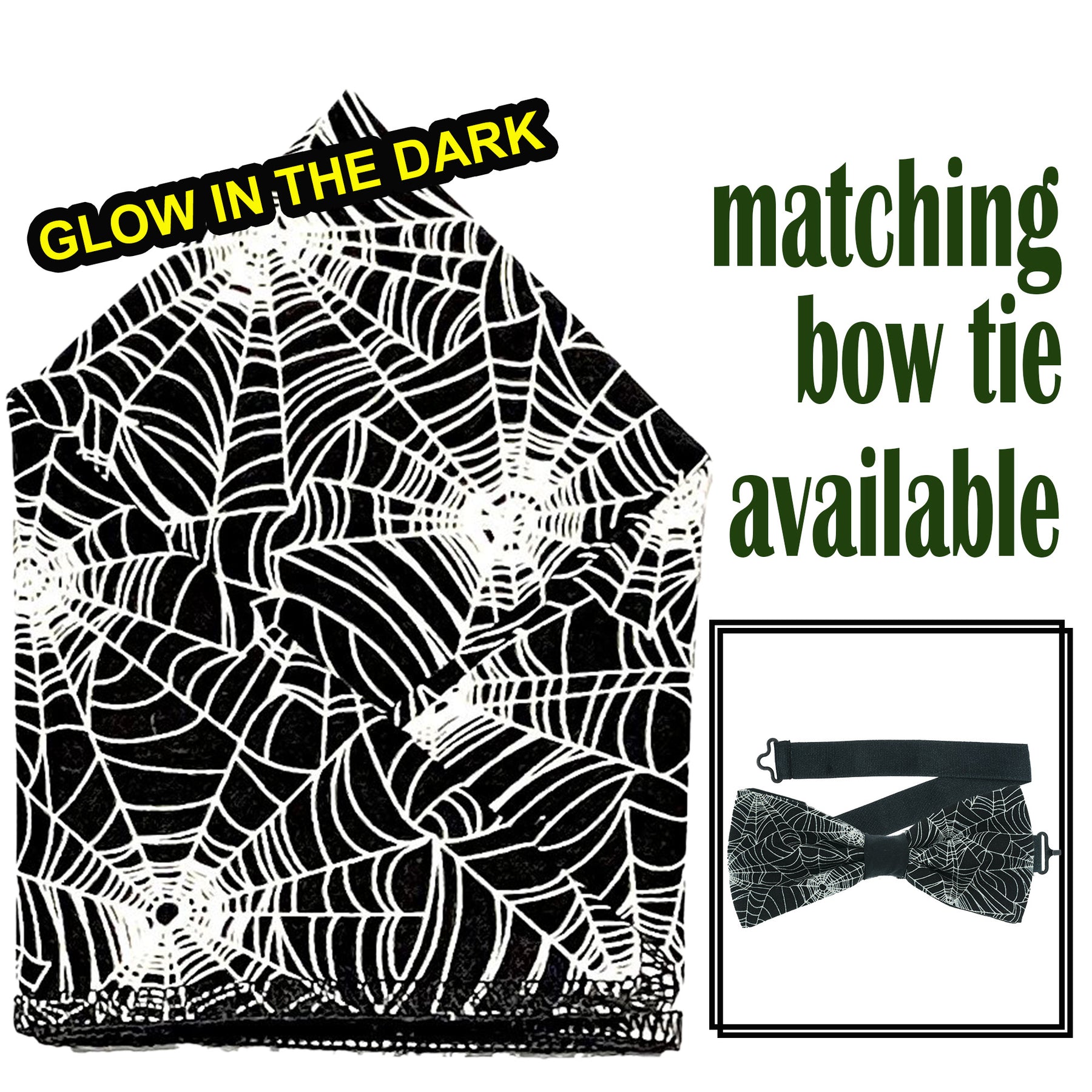 Glow in the dark Spider Web Pocket Square & Bow Tie