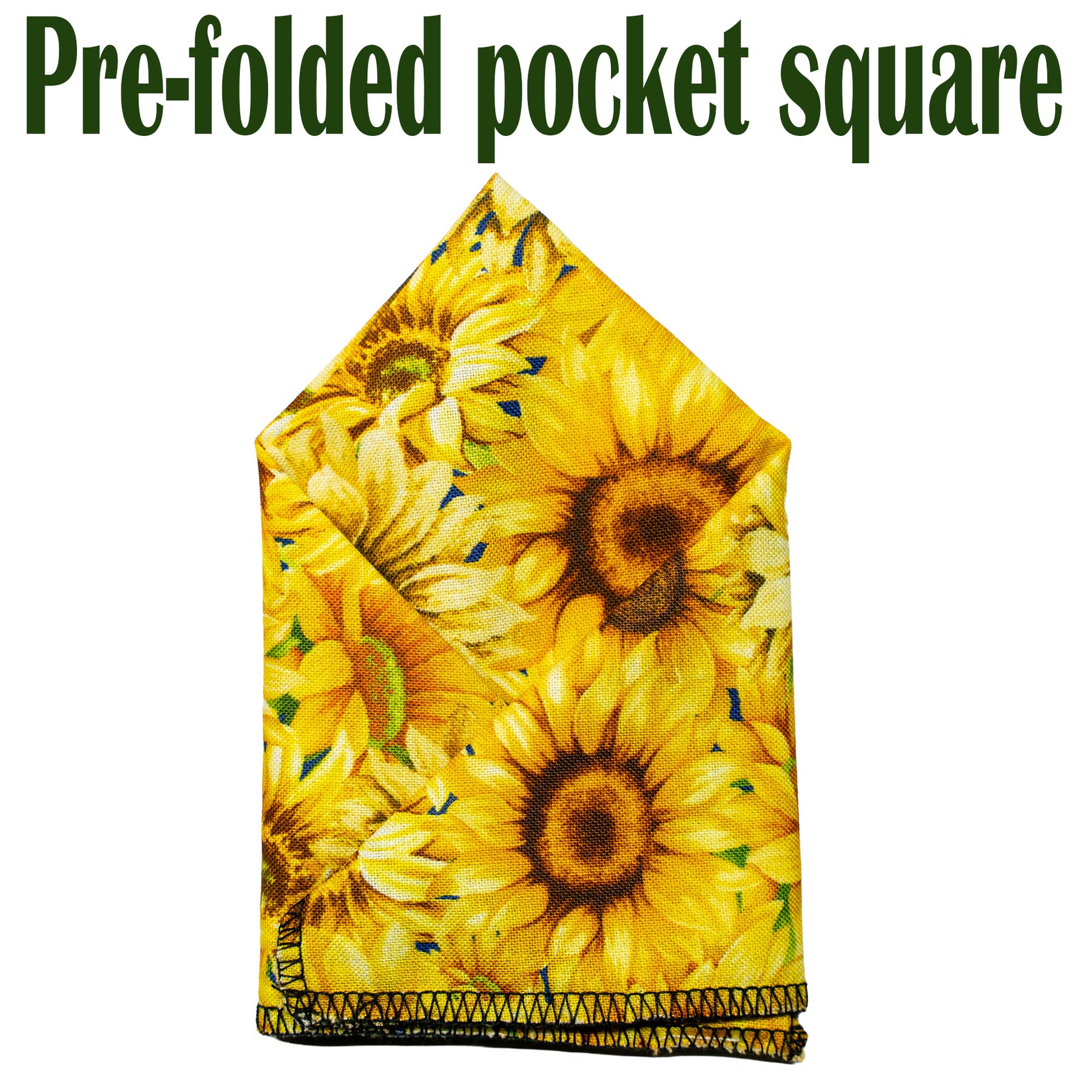 Beautiful sunflower pre-folded pocket square which is approx. 25cm x 25cm, pre-folded so you can pop it straight in your breast pocket. Handmade from 100% Cotton