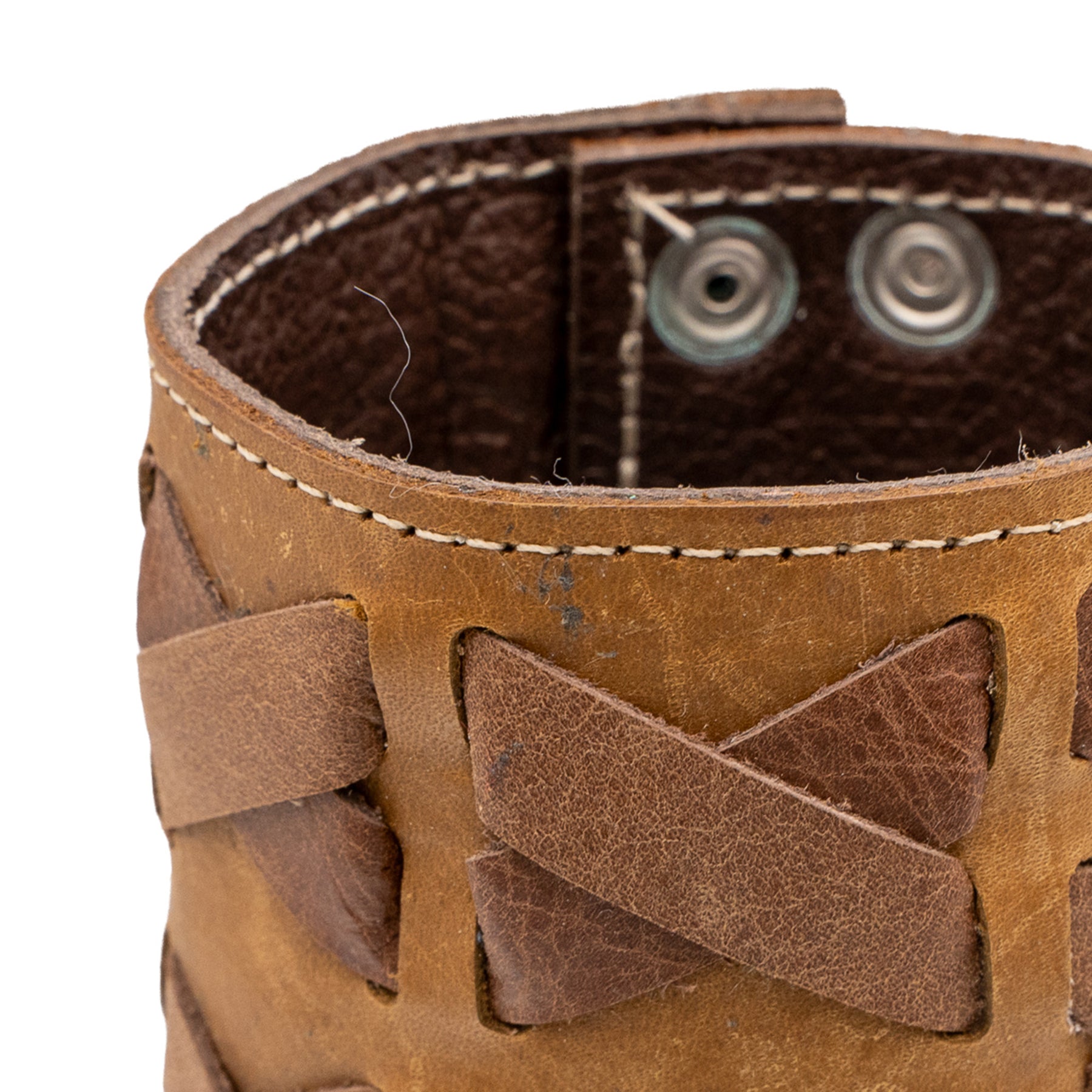Decorated with 4 rows of 2 crisscrossed leather strips