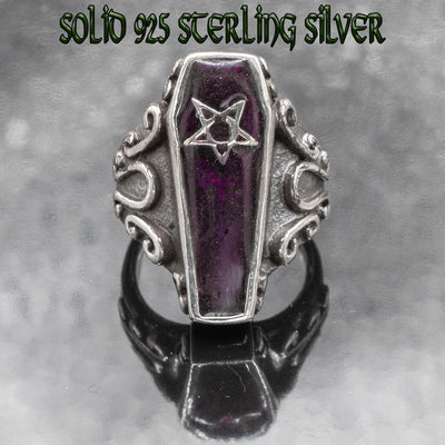 Coffin & Pentagram Ring ~ 925 Sterling Silver (Size guide in Description)