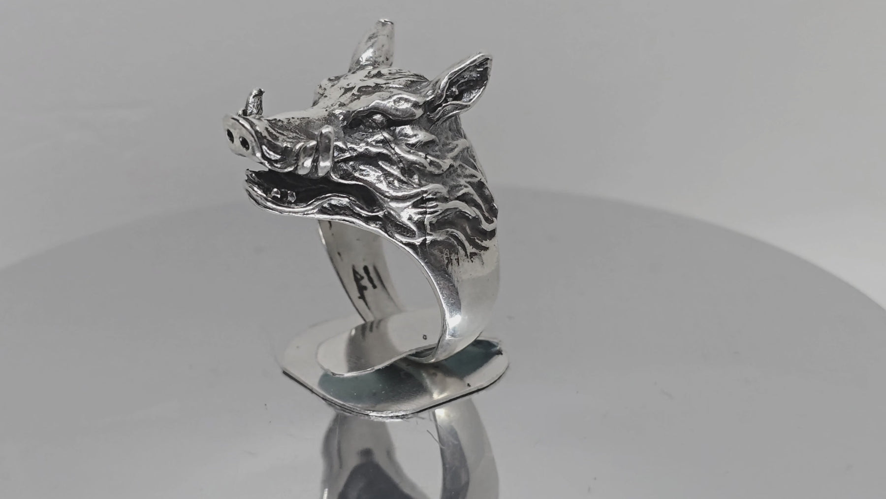 Incredible attention to detail in this chunky wild boar ring with tusks, the mouth is slightly open