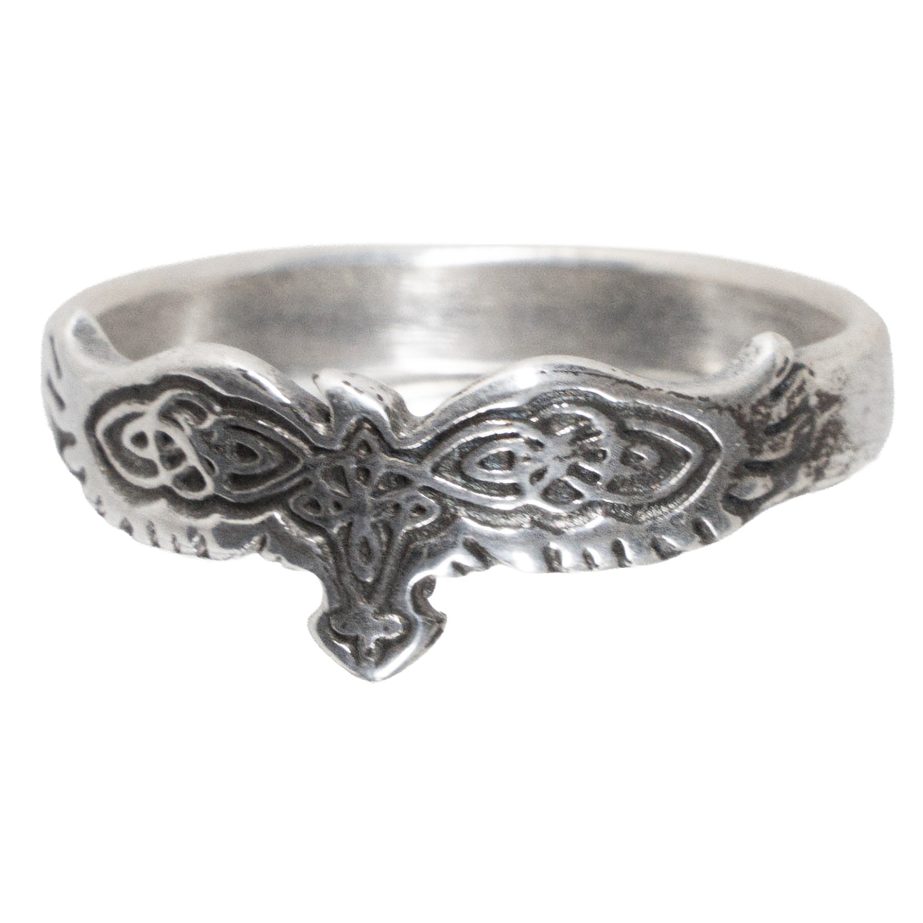 Lovely subtle ring with a raven decorated in Celtic knotwork